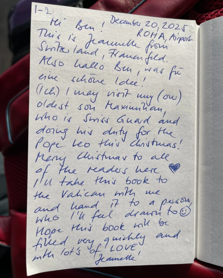 I’ll take this book to the Vatican with me and hand it to a person who I’ll feel drawn to 🙂